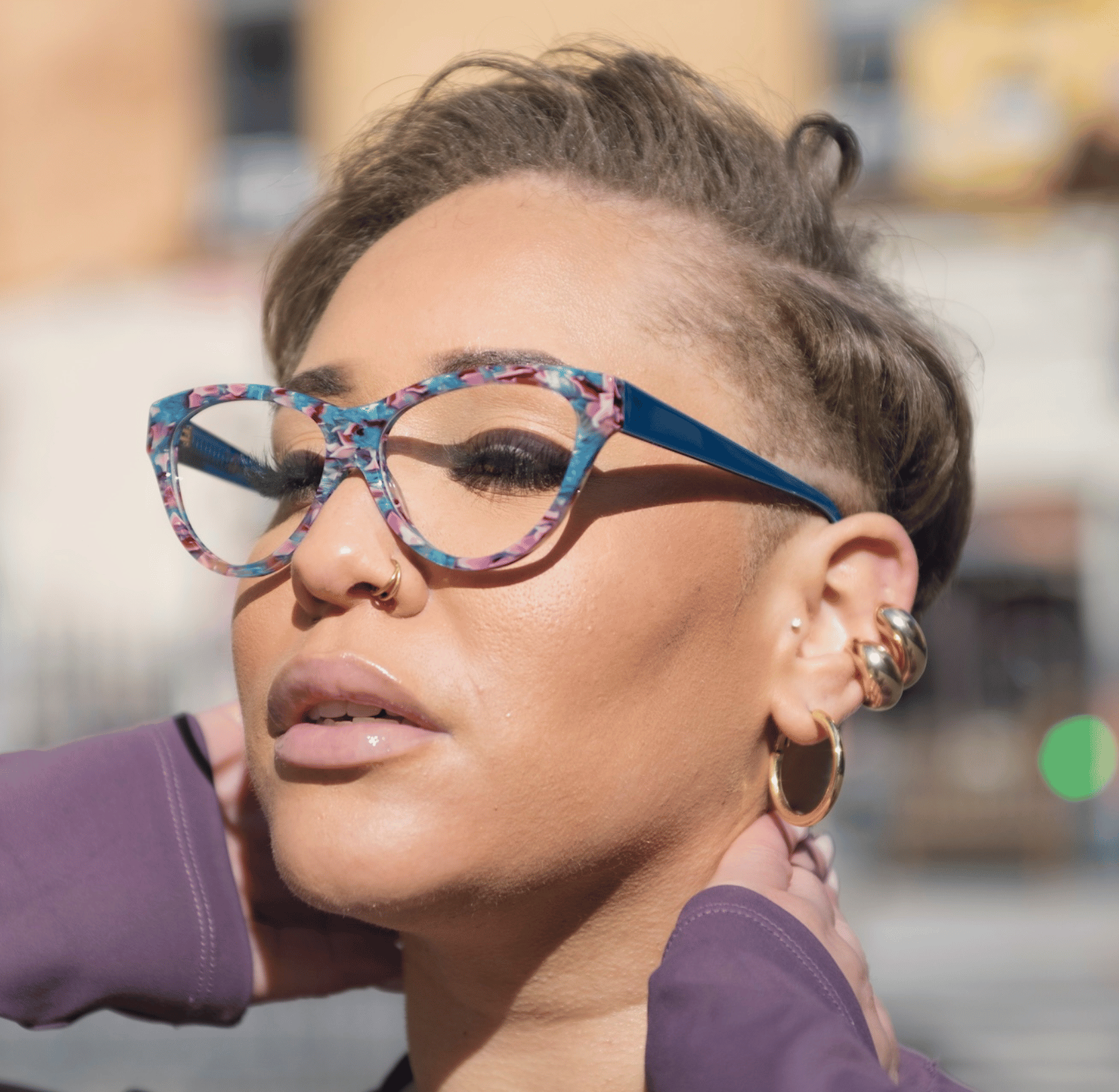 The Darby cat-frames inspired by Ida B. Wells, feature a distinctive tortoise print in a peppermint swirl with green accents. These frames honor her legacy as an investigative journalist, educator, and civil rights leader.